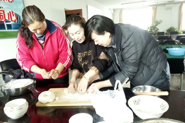 大家分工合作,你搟皮、我包餡,笑語(yǔ)不斷。