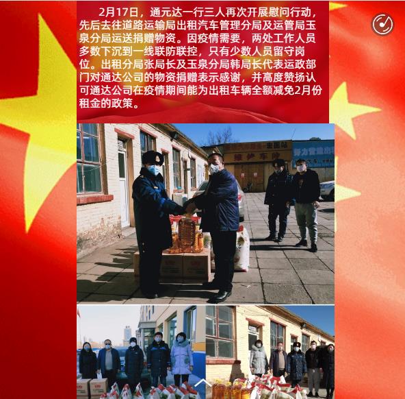 疫情形勢依然嚴峻,通達公司責無(wú)旁貸,進(jìn)行愛(ài)心捐贈就是以實(shí)際行動(dòng)來(lái)支持黨和政府的疫情防控工作,為打贏(yíng)疫情防控阻擊戰貢獻一份力量!