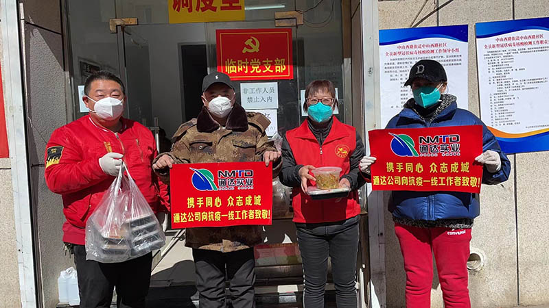 2022年3月4日,通達公司黨委、通達公司、聯(lián)合善愛(ài)之舟看望慰問(wèn)堅守在疫情防控一線(xiàn)的工作人員,并為中山西路辦事處捐贈2萬(wàn)元愛(ài)心餐。疫情發(fā)生以來(lái),感謝社區廣大一線(xiàn)工作人員沖鋒陷陣,以血肉之軀筑起健康安全的鋼鐵長(cháng)城。通達公司作為一個(gè)企業(yè),在社會(huì )需要我們的時(shí)候更應該有所擔當,用實(shí)際行動(dòng)彰顯溫暖和關(guān)愛(ài),感謝社區工作人員始終奮戰在疫情防控第一線(xiàn),為守護好居民的生命安全和平安健康付出不懈的努力。