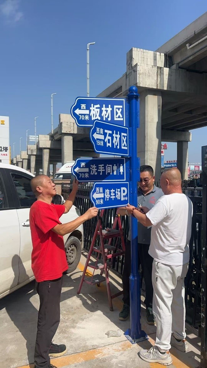 作為本地知名的綜合性建材交易平臺,通達建材市場(chǎng)涵蓋陶瓷、門(mén)窗、板材、五金等多個(gè)經(jīng)營(yíng)品類(lèi),商戶(hù)數量眾多、經(jīng)營(yíng)區域劃分細致。此前,部分新老客戶(hù)因對市場(chǎng)布局不熟悉,偶有找店耗時(shí)較長(cháng)的情況,一定程度上影響了商戶(hù)的接待效率。為切實(shí)解決這一問(wèn)題,市場(chǎng)管理方經(jīng)過(guò)前期實(shí)地調研,充分征求商戶(hù)意見(jiàn),最終確定了指示牌的安裝方案。